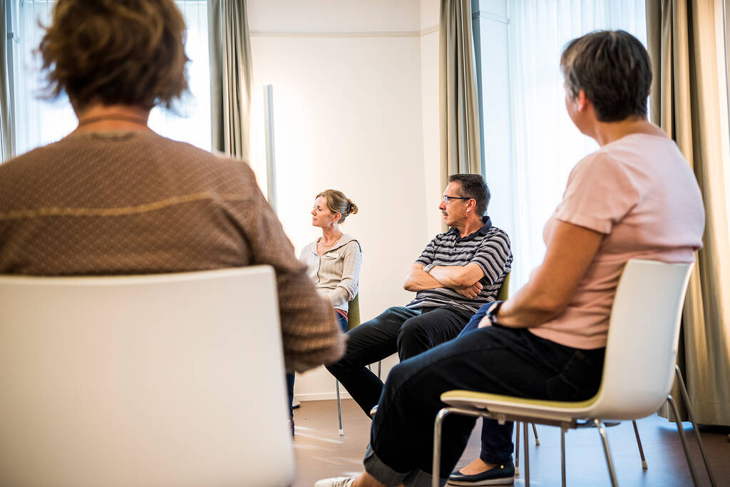 In Gruppen-Psychotherapien tauschen sich Patientinnen und Patienten der gleichen Abteilung unter therapeutischer Leitung miteinander über ihr Erleben, ihre Fragen, Probleme und mögliche Lösungen aus. Im vertrauensvollen Gespräch geben sie sich gegenseitig Rückmeldungen und erhalten Antworten, was Scham abbaut und Solidarität vermittelt. Auch eröffnet es neue Sicht- und Verhaltensweisen, vertieft die Kommunikation und die Beziehungen der Patientinnen und Patienten untereinander und hilft, Schwierigkeiten mit dem Umfeld anders anzugehen.